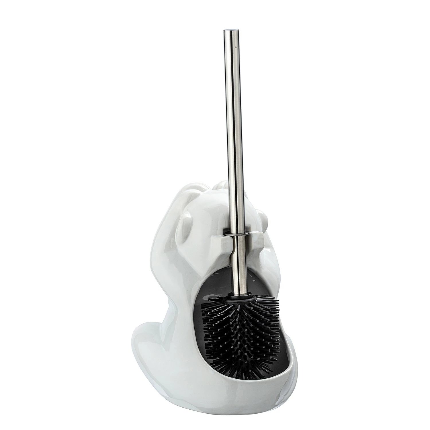 - Weitere Qualitätsmerkmale: Praktischer Bürstenhalter: Die trendige Affenform macht die WC-Garnitur Monkey Dark aus hochwertiger Keramik in Weiß zu einem praktischen Eyecatcher, der in keiner Toilette fehlen sollte