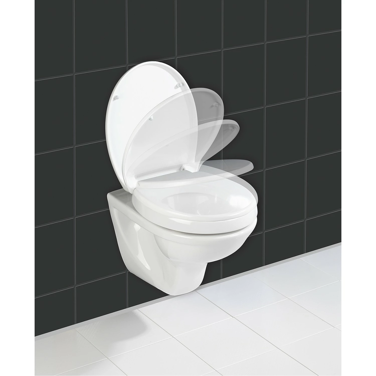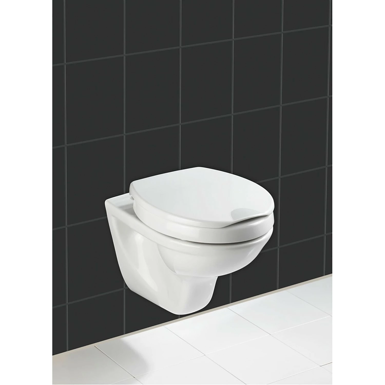 - Lieferumfang: WC-Sitz mit Sitzflächenerhöhung, Wandhaltegriff 43cm