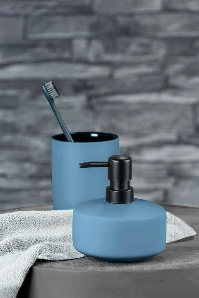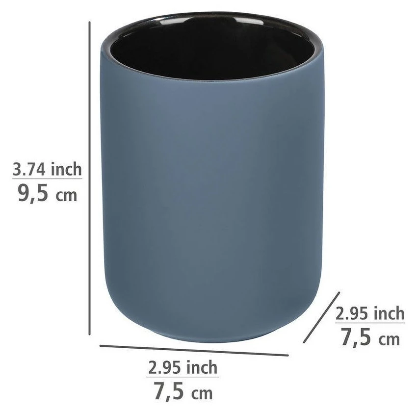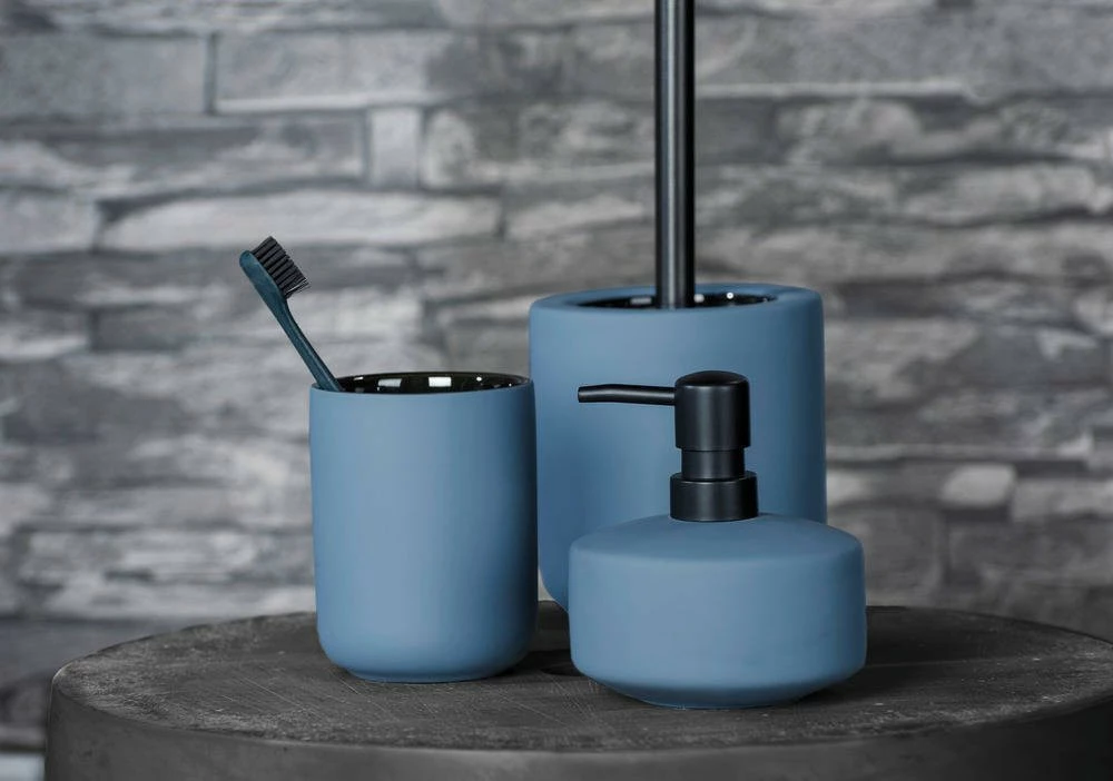 Die moderne Badserie AVELLINO in gedämpften und kräftigen Farben basiert auf einer harmonischen Kombination aus Aussehen, Berührung und Funktionalität. In blauer Farbe und mit einer perfekt glatten Oberfläche können Sie die AVELLINO Bad-Accessoires in jedem Bad und Gäste-WC genießen. Verwenden Sie diese Tasse, um Zahnbürsten und Zahnpasta oder für Pinsel und Make-up-Zubehör aufzubewahren!