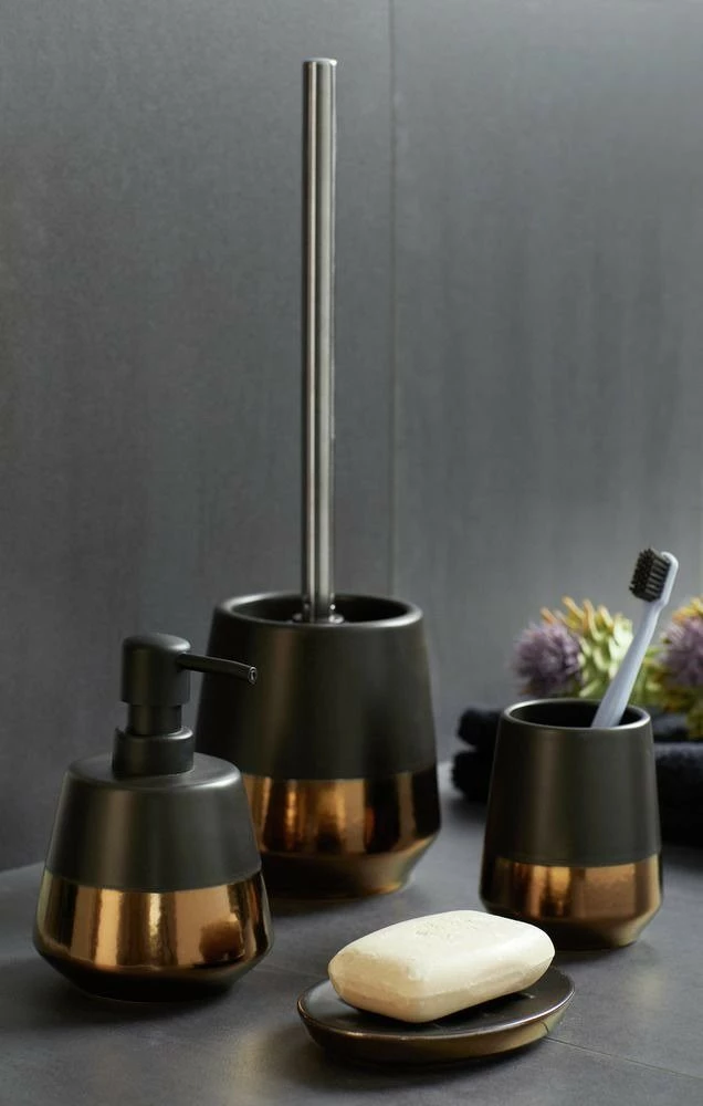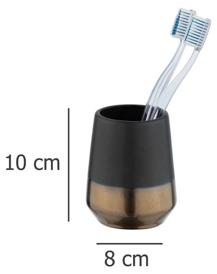 Zahnbürstenbecher der beliebten Marke WENKO ist eine Kollektion, in der jeder etwas für sich finden kann. Sie wurden alle dazu gemacht, unsere Augen auf jeden Badezimmerbesuch zu genießen. Die Vielfalt der Materialien und Muster, aus denen sie hergestellt wurden, setzt auf Vielfalt. Hier präsentieren wir eine keramische Zahnbürstenbecher in schwarz und gold Farbe.