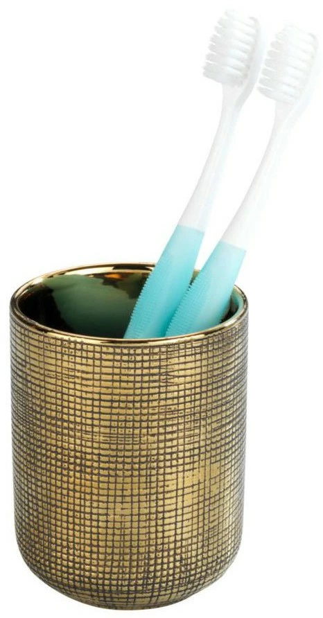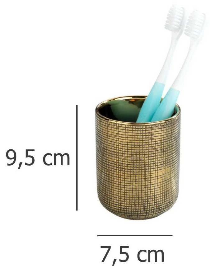Zahnputzbecher RIVARA, gold, WENKO. Ein Zahnputzbecher ist theoretisch ein Element der Ausrüstung, ohne die wir normal funktionieren können. Es gibt jedoch zumindest einige gute Gründe, einen zu haben. Vor allem Hygiene.