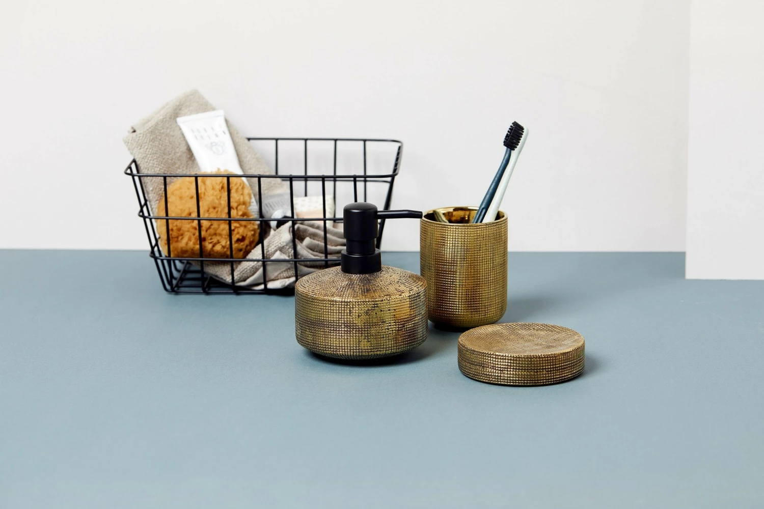 Zahnbürstenbecher der beliebten Marke WENKO ist eine Kollektion, in der jeder etwas für sich auswählt. Sie sind alle entworfen, um unsere Augen bei jedem Badezimmerbesuch zu genießen. Die Wahl der Materialien und Muster, aus denen sie hergestellt wurden, setzt auf Vielfalt. Hier präsentieren wir eine Keramikbecher für Zahnbürsten in Goldfarbe mit einem zarten Muster.