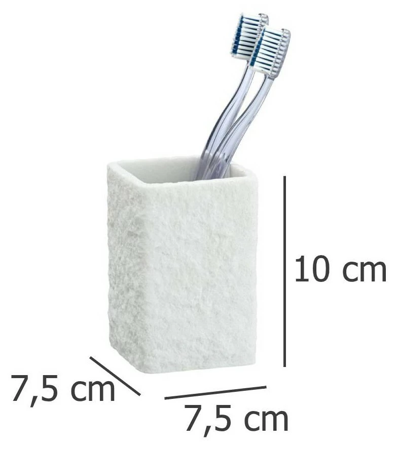 VILLATA Zahnbürstenbecher ist ein Produkt aus strapazierfähigem Polyresin. Dieses Material ist gleichzeitig leicht und langlebig und gleichzeitig sicher für die Oberfläche: ein glatter Boden zerkratzt nicht die Arbeitsplatte, die Spüle oder das Regal unter dem Spiegel. Der VILLATA Zahnputzbecher hat folgende Maße: 7,5 cm x 7,5 cm x 10 cm (Länge x Breite x Höhe).