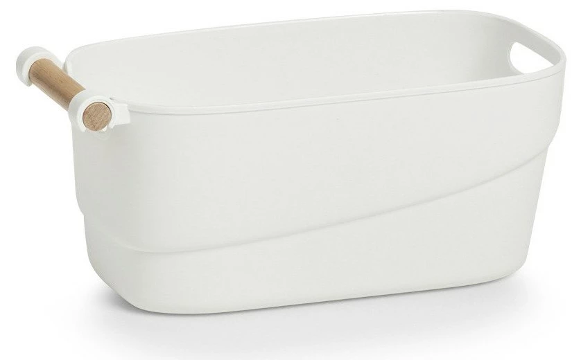 Einer der Elemente, die Ihnen helfen, Ihr Bad zu reinigen, ist der Kosmetik-Organizer von ZELLER. Das Produkt ist 27 cm x 14,5 cm x 12 cm (LxBxH) und besteht aus robustem Kunststoff in neutraler weißer Farbe. Dank seiner Größe wird es alle notwendigen kosmetischen Accessoires, Hygieneprodukte und Kosmetika aufnehmen und gleichzeitig nicht viel wertvollen Platz einnehmen. Der flache und glatte Boden sorgt dafür, dass der Kosmetik-Organizer nicht rutscht oder krabbelt und die Oberfläche nicht zerkratzt .
