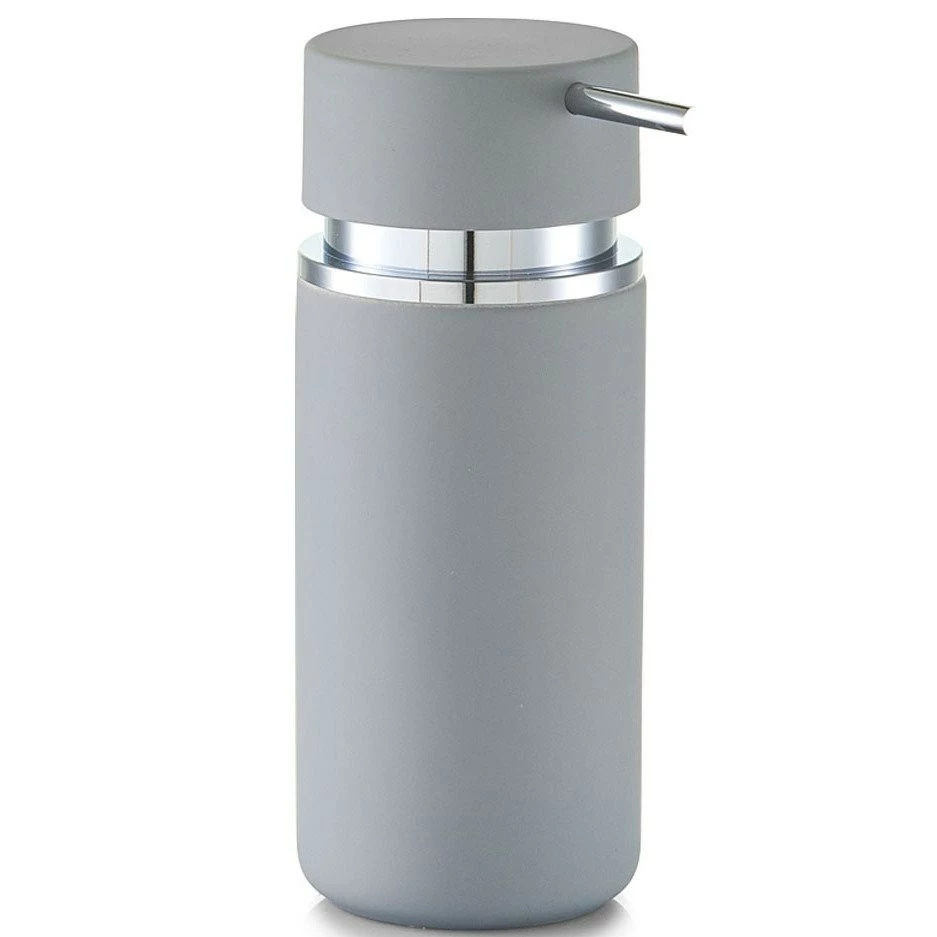 Keramikseifenspender aus der Badzubehör-Serie RUBBER. Ermöglicht schnelles und bequemes Auftragen von Seife. Darüber hinaus funktioniert es gut als Spender für Geschirrspülmittel, Lotion, Shampoo, usw. Entworfen für mehrere Nachfüllungen. Hergestellt aus hochwertiger Keramik. Pumpe und Kunststoffdeckel stilisiert auf verchromtem Metall.
